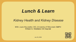 - Lunch and Learn Series: Kidney Health and Kidney Disease 7-16-25