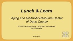- Lunch and Learn Series: Aging and Disability Resource Center 6-4-25